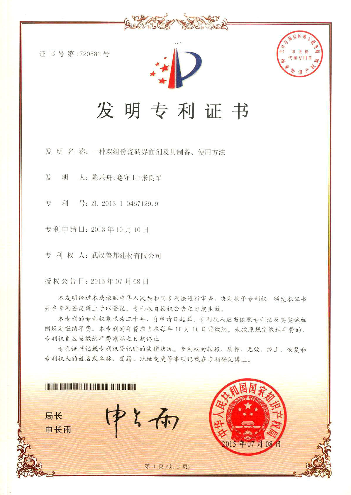 本產品是湖北魯邦建材股份有限公司技術研發(fā)中心開發(fā)的一種擁有國家發(fā)明專利(專利號:ZL2013104671299)的新型瓷磚粘結界面材料,由國際大品牌高分子聚合物及優(yōu)質改性劑復合精制而成,能極大的釋放大部分玻化磚等高密度低吸水率磚與粘結材料之間的應力,明顯的提高玻化磚等高密度低吸水率磚的粘結效果,不易空鼓,不易掉磚,直接解決大磚及高密度低吸水率磚粘貼難的問題。