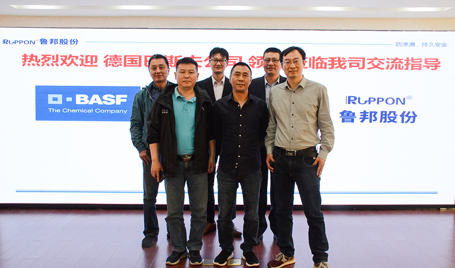 2019年5月8日,陽光明媚。全球化工領(lǐng)導(dǎo)者,魯邦股份的重要合作伙伴巴斯夫BASF亞太區(qū)技術(shù)市場高級經(jīng)理王、建筑聚合分散體經(jīng)理石山備凡先生、銷售經(jīng)理劉、以及區(qū)域總代理朱總一行前來我司參觀指導(dǎo)。