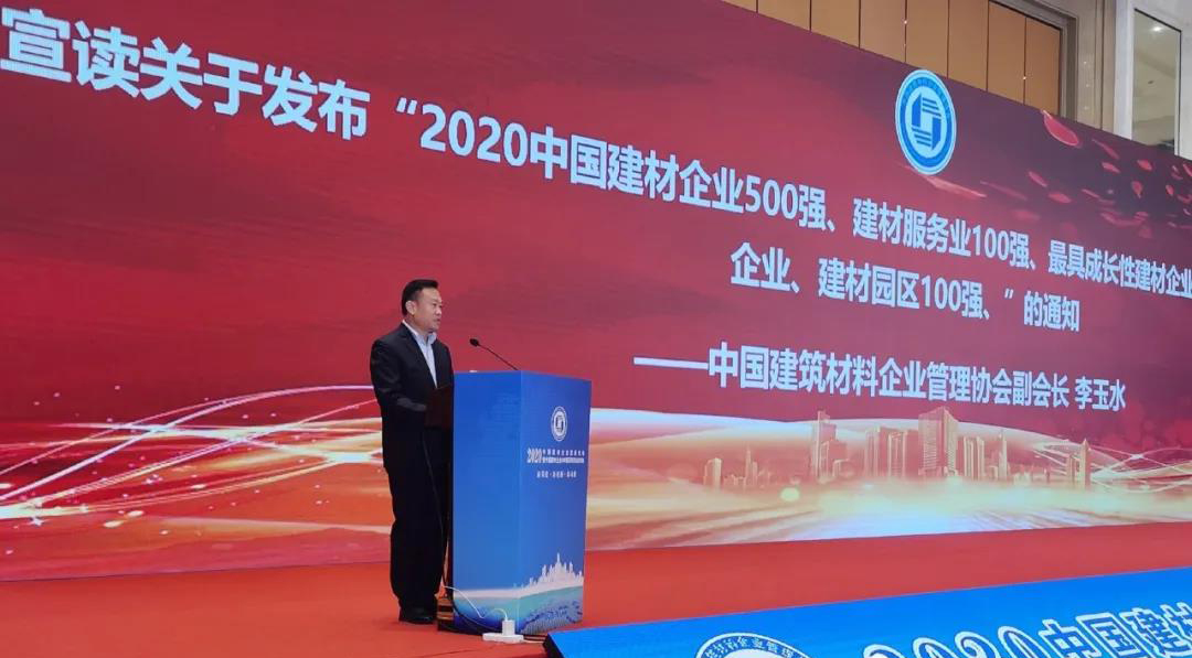 中國建筑材料企業(yè)管理協(xié)會副會長李玉水宣讀關(guān)于發(fā)布2020中國建材企業(yè)500強等獎項的通知