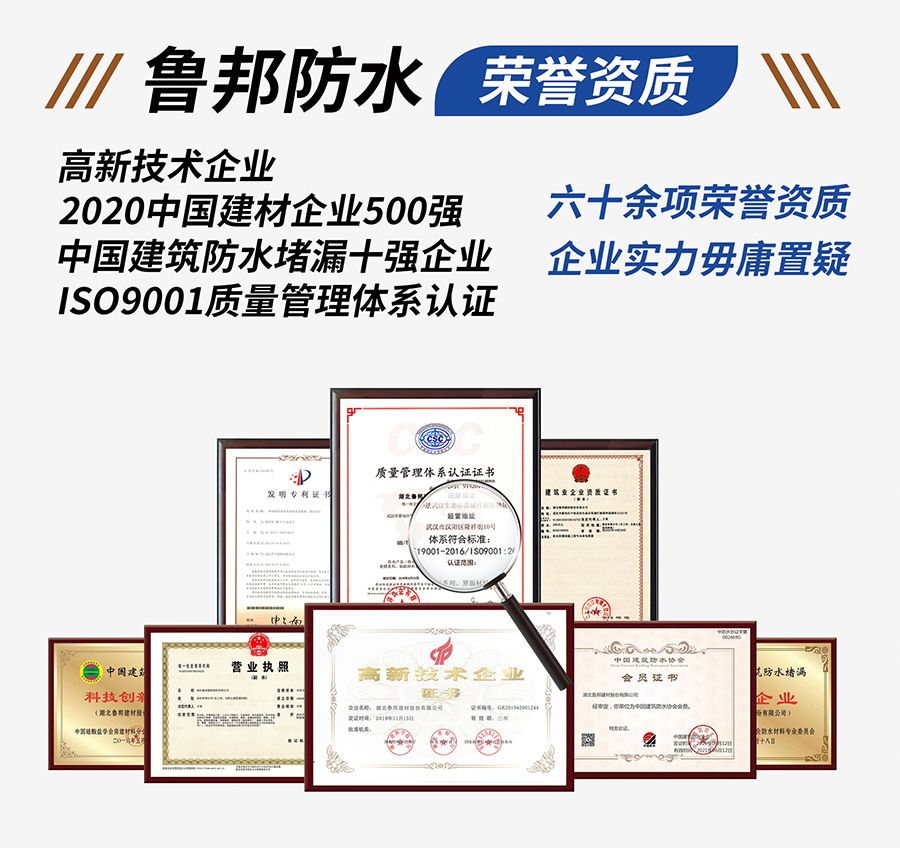 回首過往十三年,魯邦股份一步一個腳印,在防水事業(yè)上取得了令人矚目的成就。公司先后獲得“全國防水堵漏十強(qiáng)企業(yè)”,“中國建材企業(yè)500強(qiáng)”等榮譽(yù)稱號,同時公司成為高新技術(shù)企業(yè),擁有多項國家發(fā)明專利及新型實用專利。公司在全國擁有數(shù)千家專營店。公司的產(chǎn)品深受客戶肯定,服務(wù)也為客戶所稱道!